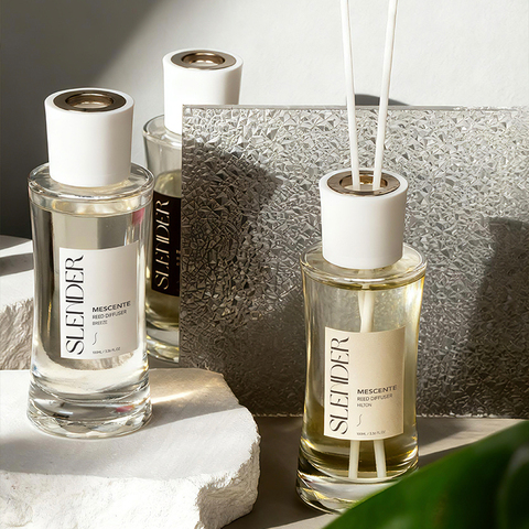 Mescenteラグジュアリープライベートラベルガラスボトルエッセンシャルオイルリードディフューザー芳香剤リードディフューザー籐スティック液体付き