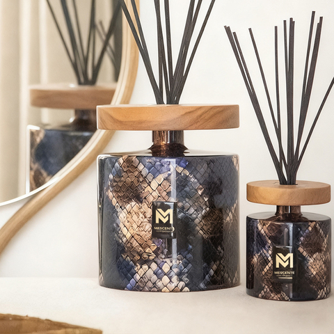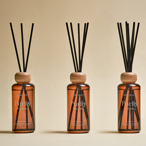 น้ำหอมปรับอากาศแบบก้านไม้หอม กลิ่นหอมระดับพรีเมียม บรรจุขวดแก้วแบรนด์ Mescente Luxury Private Label พร้อมก้านหวาย